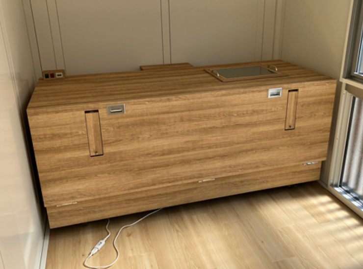 ドライアイスを使用せずにご遺体を安置できる、全く新しいご遺体安置装置「DENBA EVER」。